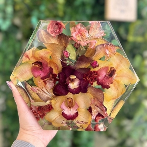 As flores do seu grande dia preservadas com amor, arte e resina de alta qualidade.